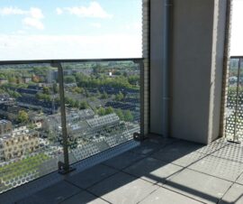 Vanuit de woonkamer loop je door naar het balkon met verlichting en elektrisch aansluitpunt en weer dat prachtige vergezicht over de stad en de Utrechtse Heuvelrug.