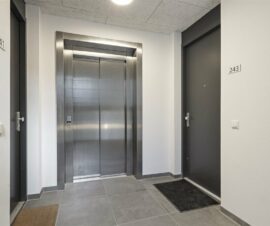 Statige entree met brievenbussen, bellentableau, lift en trappenhuis.