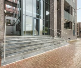 Op de begane grond tref je in de centrale hal het bellentableau, de brievenbussen en staat de lift of het trappenhuis klaar om je naar de verschillende woonlagen te brengen.