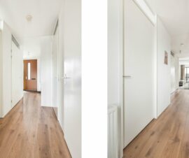 Vanuit de hal kom je binnen in de woonkamer. Welkom thuis! Het geheel kent een strakke wandafwerking met een keurige laminaatvloer die voor een groot deel door het gehele appartement ligt.
