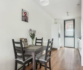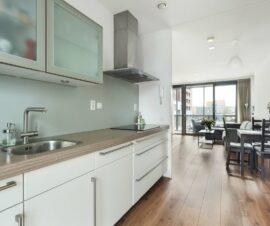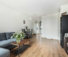 Daarnaast komt er, dankzij de schuifpui naar het balkon, een aangename hoeveelheid daglicht naar binnen wat tegelijkertijd een ontspannen sfeer met zich mee brengt. Creëer een knusse zithoek, plof op de bank en voel je thuis! Vervolgens kun je op zonnige dagen de schuifpui wagenwijd openzetten, zodat het binnen- en buitenleven naadloos in elkaar overlopen!