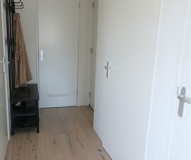 Bij de entree valt meteen de prachtige vloer op die door het hele appartement ligt, de hal geeft toegang tot een inpandige berging met C.V.-ketel en MV, een toilet met fonteintje en de meterkast.