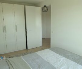 The spacious bedroom, with also have a window from the ground to the ceiling, measures about 12m2. The fully tiled bathroom has a shower, sink and connection for the washing machine.