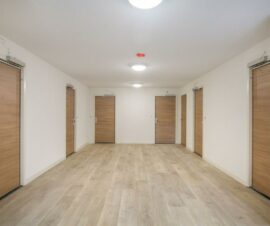 Via de centrale hal bereik je de entree van het appartement. In de hal van het appartement zit de meterkast en vaste kast met opstelling van de mechanische ventilatie, boiler en vloerverwarmingsinstallatie, alsmede bergruimte.